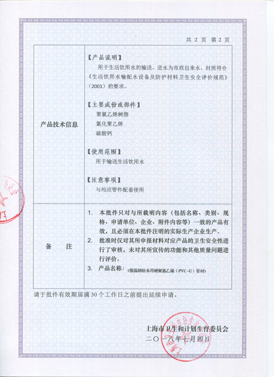 卫生许可证 管材2