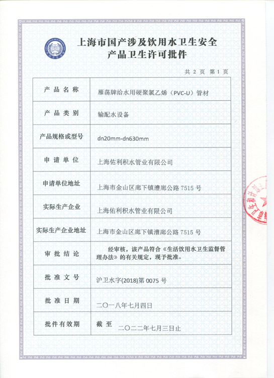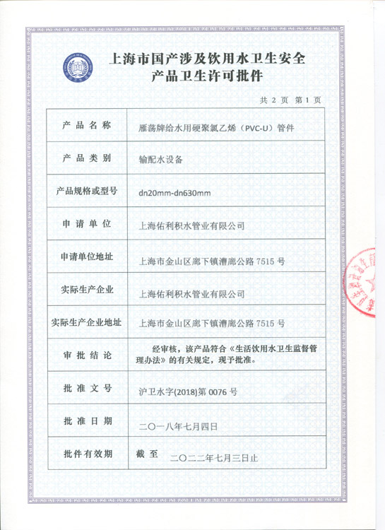 卫生许可证 管材