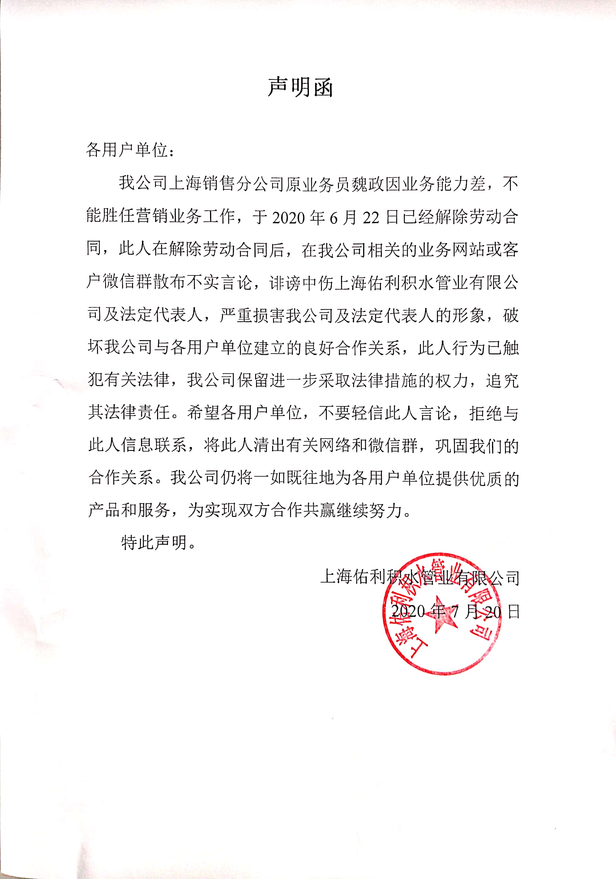 SHANGHAI YOULI WATER-STORING PIPES CO. ,LTD