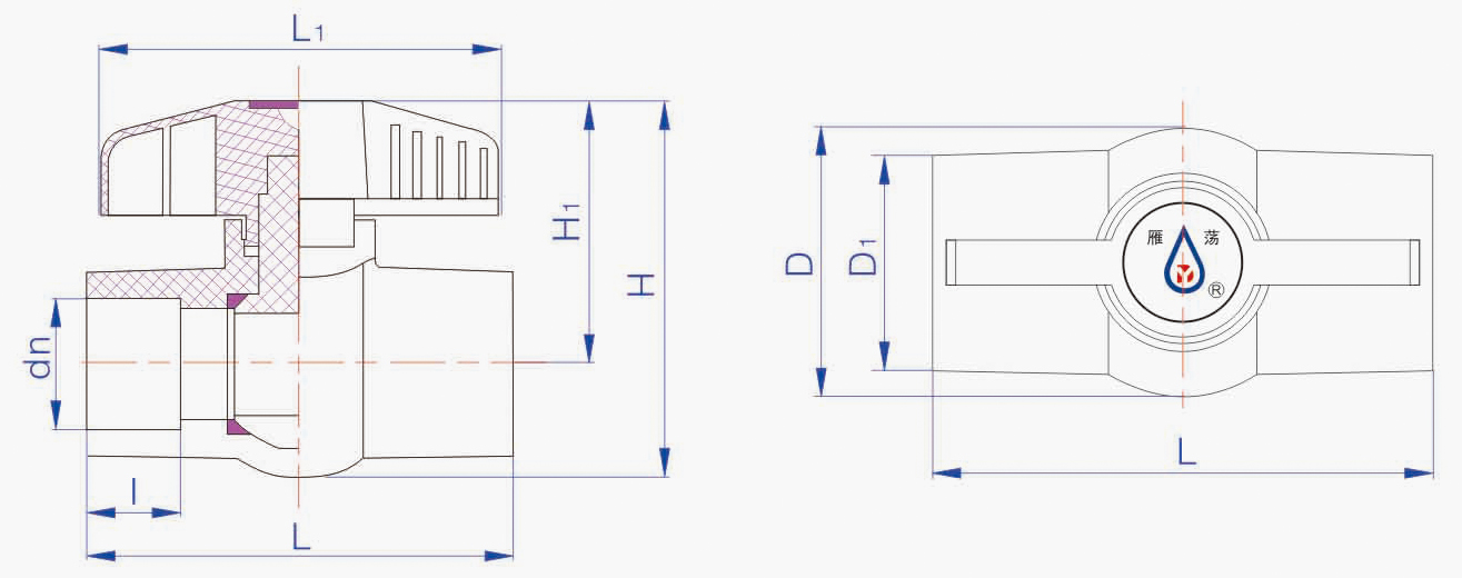 公称外径 dn | I | PSPT | D | D1 | H1 | H | L1 | L |